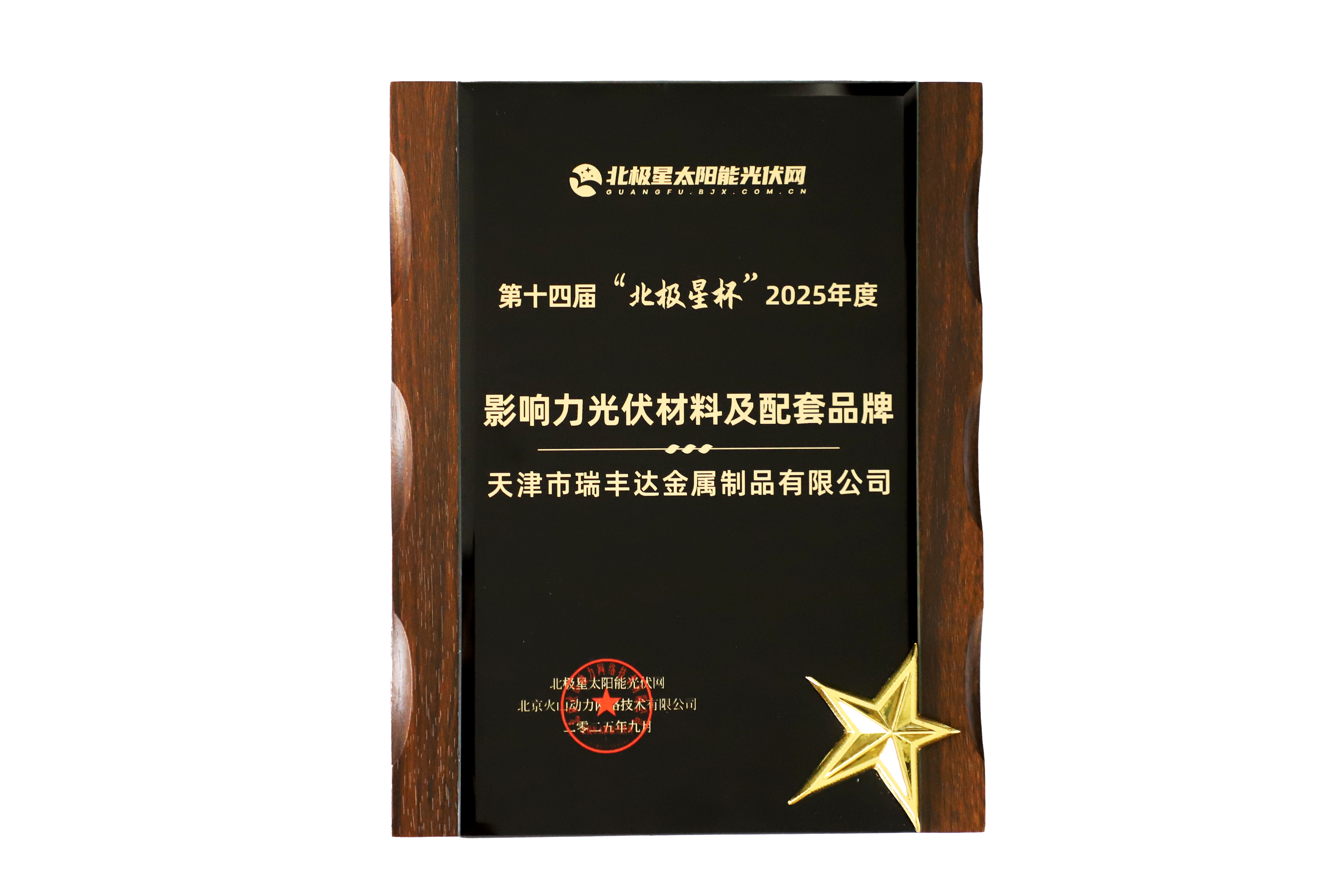 9月9日,在南京舉辦的第十四屆“北極星杯”光伏影響力品牌評選頒獎典禮上,天津市瑞豐達金屬制品有限公司憑借其卓越的產品質量、技術創新的不懈追求以及對光伏行業發展作出的突出貢獻,成功攬獲“影響力光伏材料及配套品牌” 和 “影響力優秀光伏創新企業” 兩項大獎。